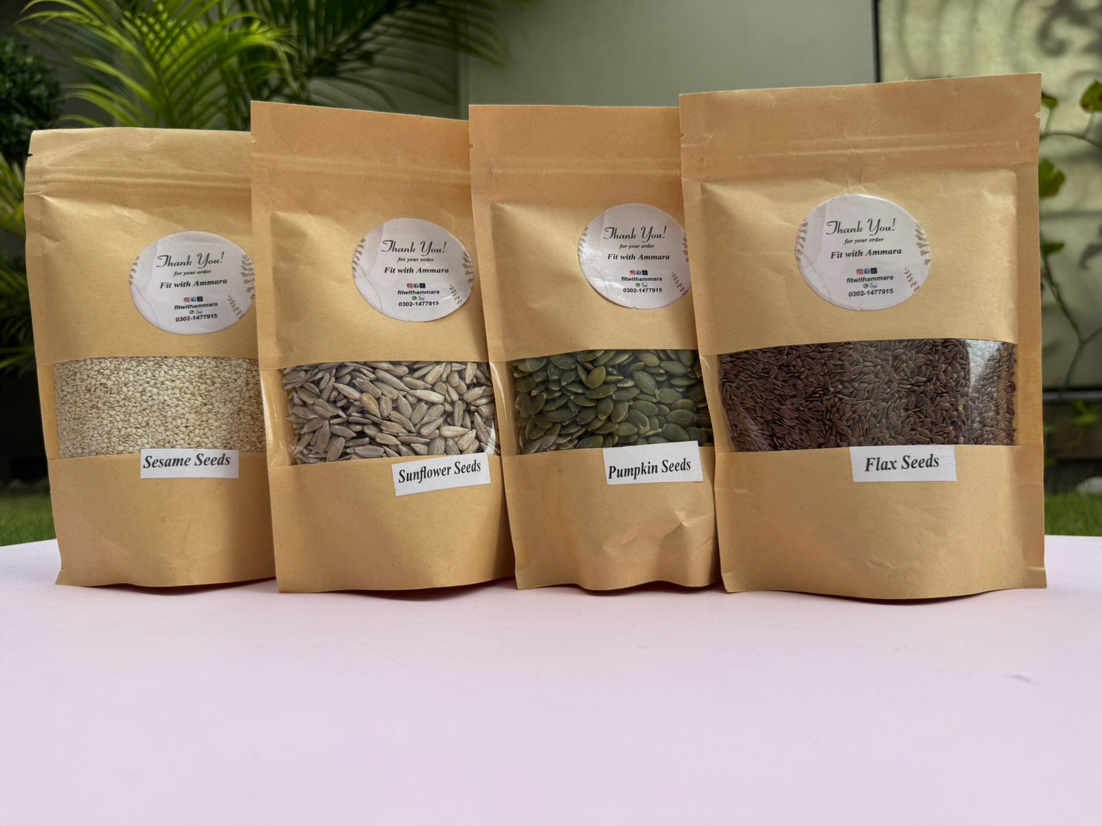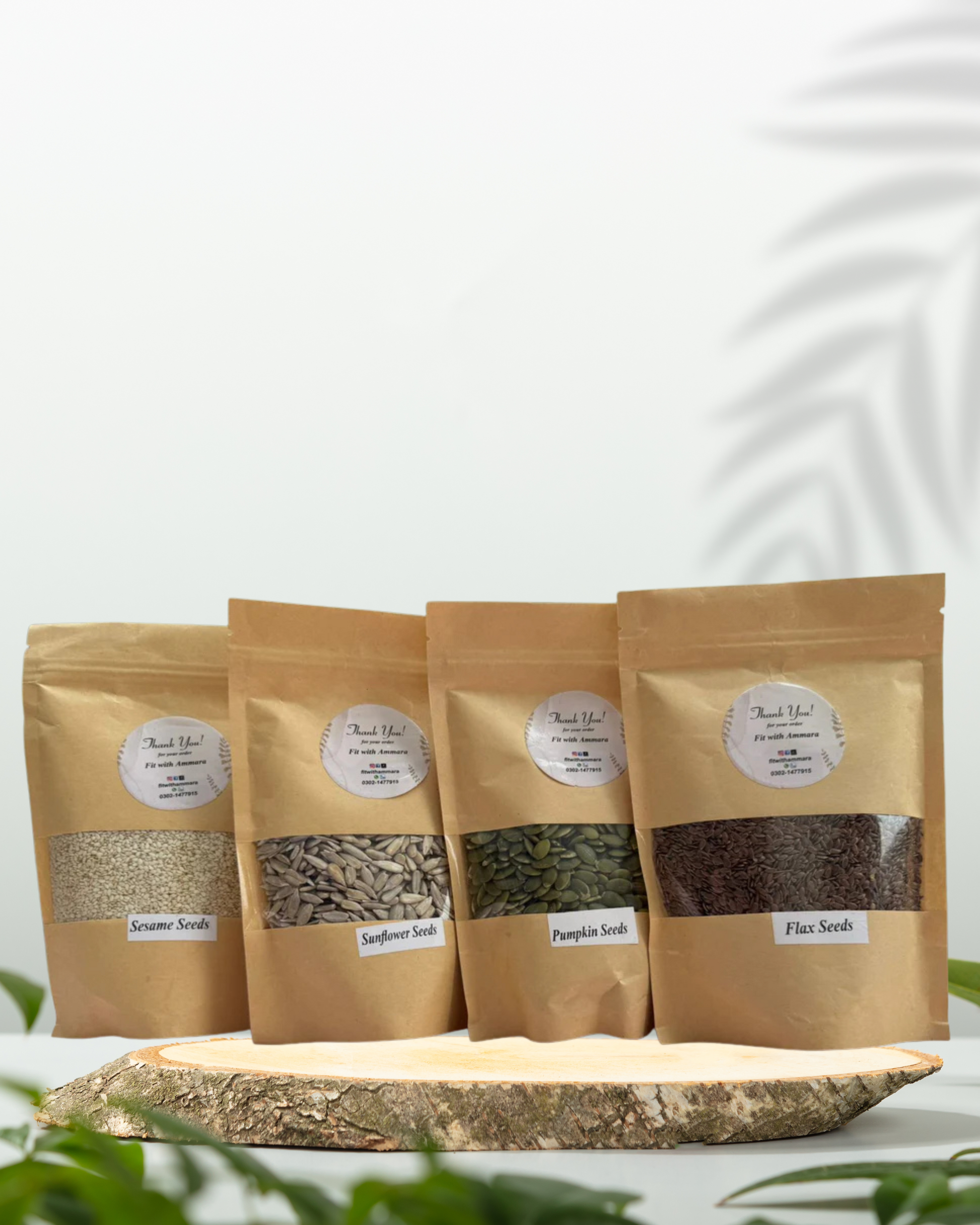 Fuel your body naturally with our 4 Seeds Power Pack. A wholesome bundle of premium-quality seeds designed to support your immunity, digestion, hormonal balance, and overall energy.
