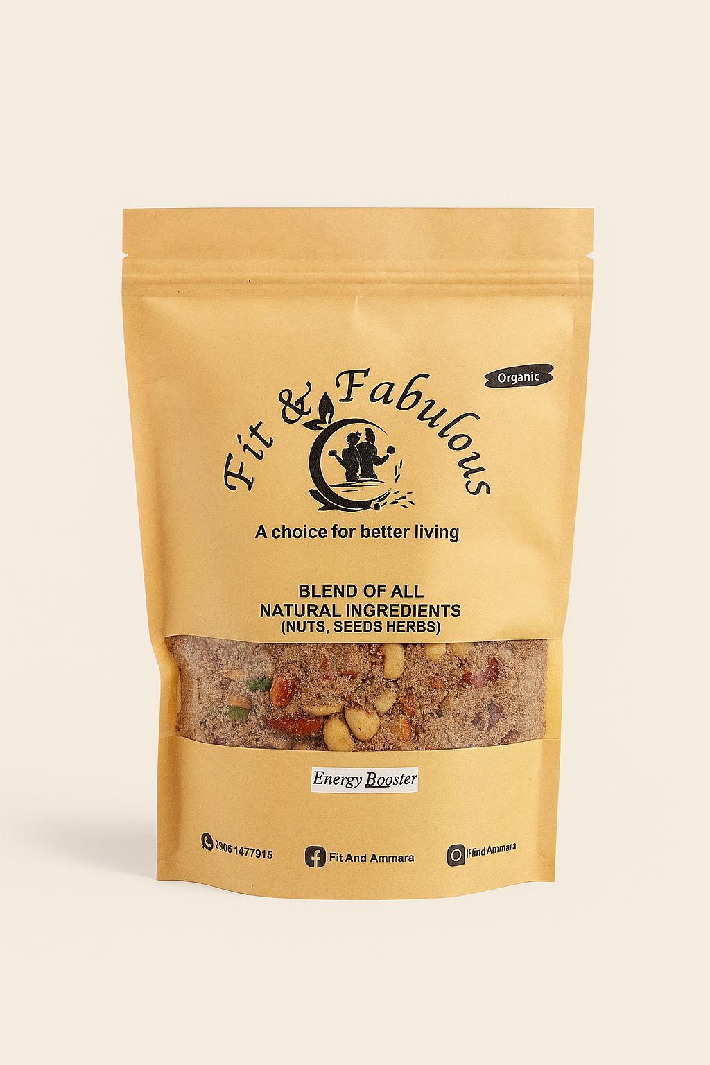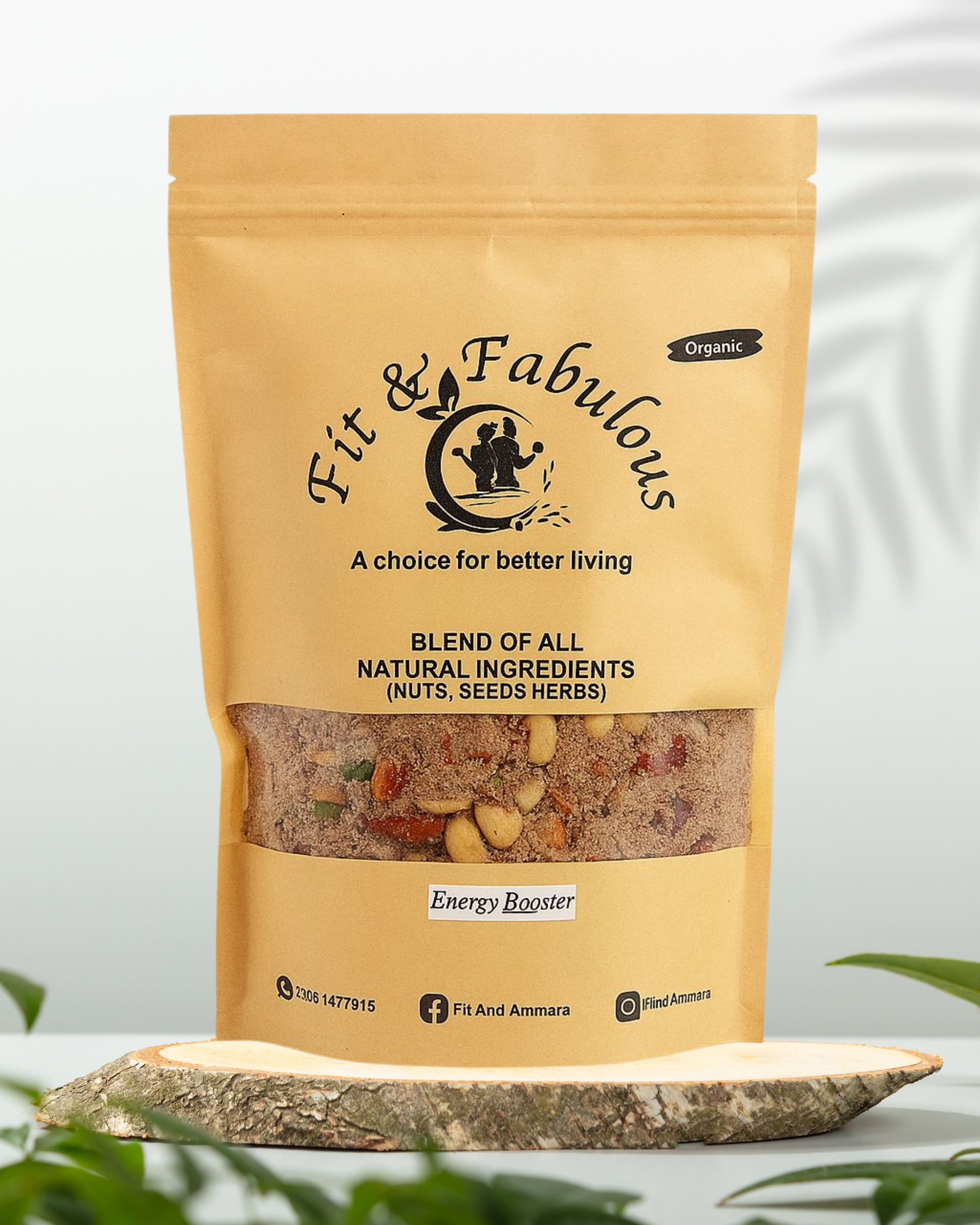 Boost your energy the natural way with Fit with Ammara’s Energy Booster Powder, a premium blend of nutrient-rich herbs, seeds, and plant-based energizers. Specially crafted to enhance stamina, improve mental clarity, and support overall wellness – without the jitters or crash of caffeine.