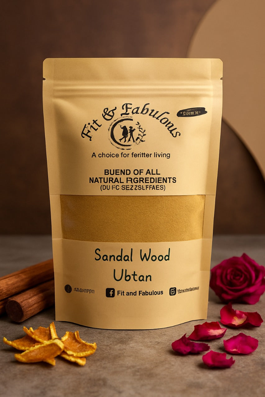 Fit with Ammara brings you a luxurious, chemical-free Sandal Ubtan, crafted with a powerful blend of 10+ herbal ingredients trusted for centuries in desi skincare.