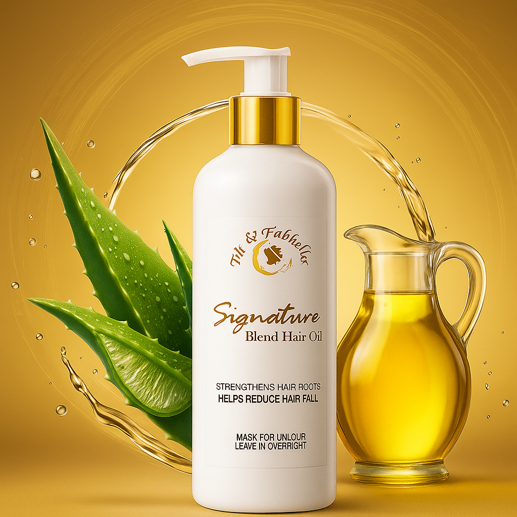 A luxurious blend of 18 powerful natural ingredients, our Signature Blend Hair Oil is crafted to deeply nourish, repair, and strengthen your hair from root to tip.